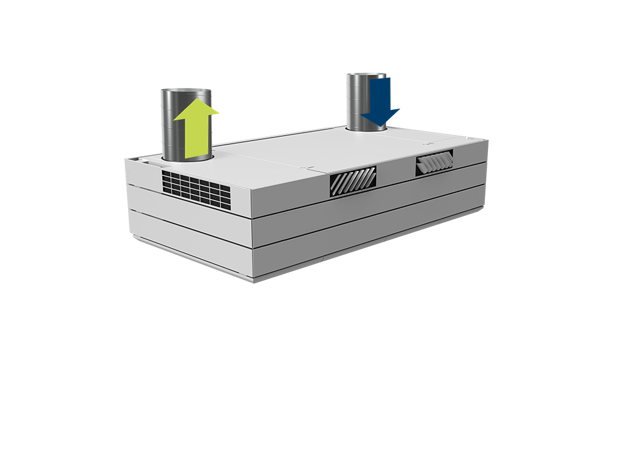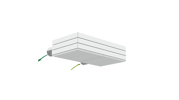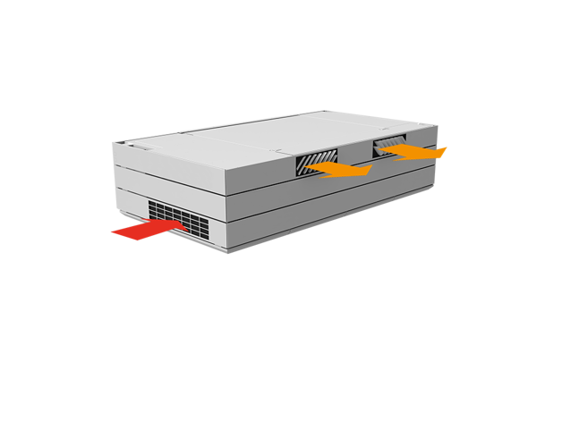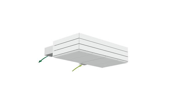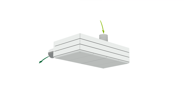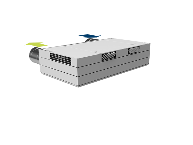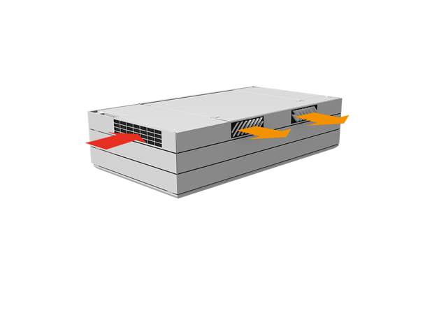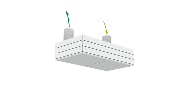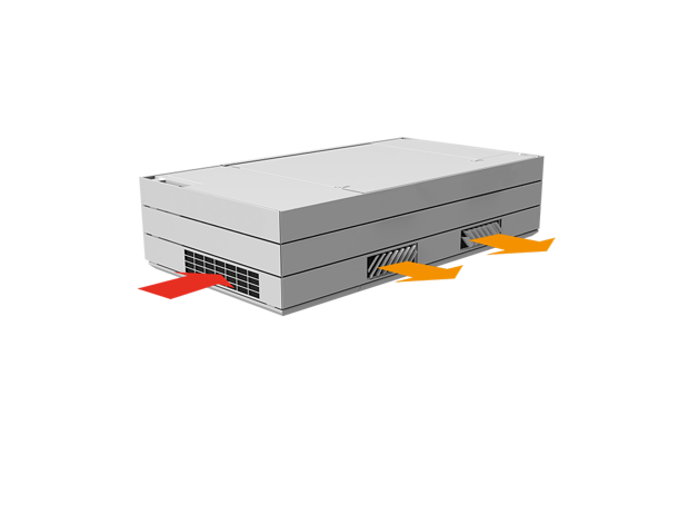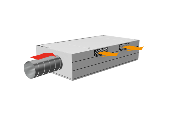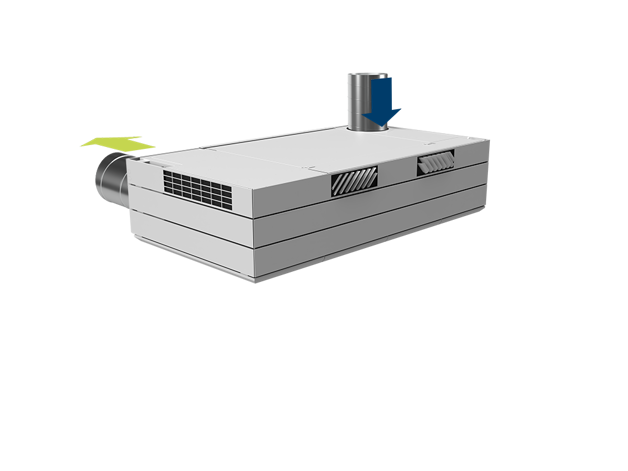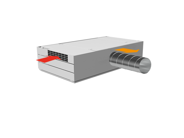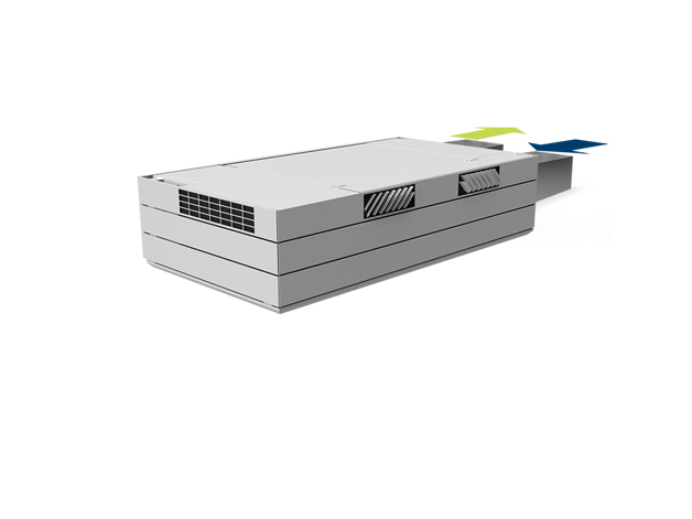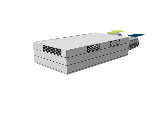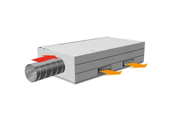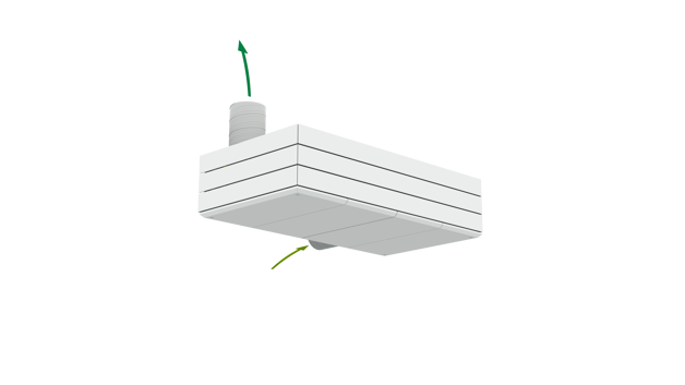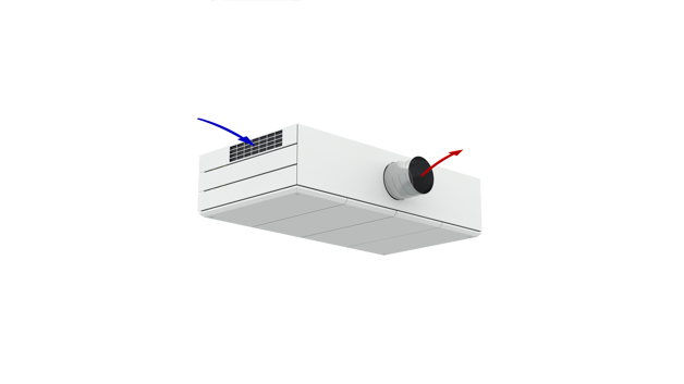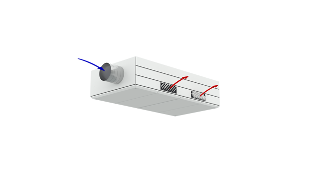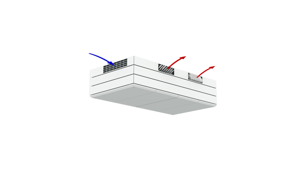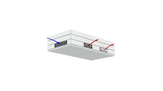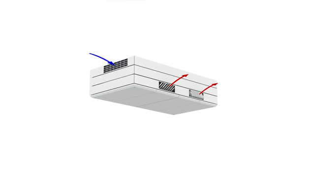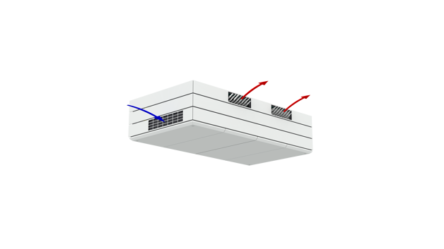 Derfor har AM 1000 automatisk justerbar innblåsning – såkalt Adaptive Airflow™. En patentanmeldt innblåsningsdiffusor på AM 1000 tilpasser innblåsnings-mønsteret etter luftmengde og lokalets geometri.