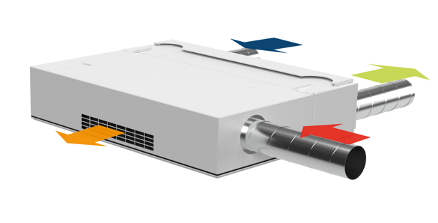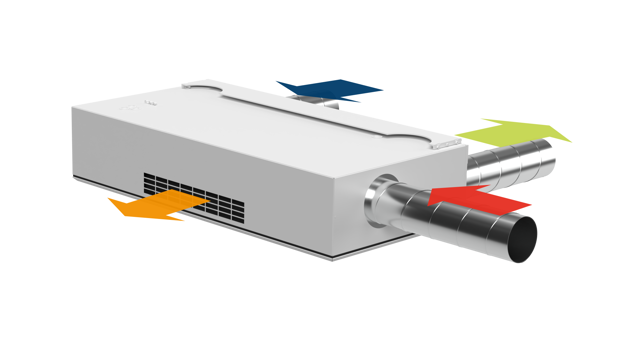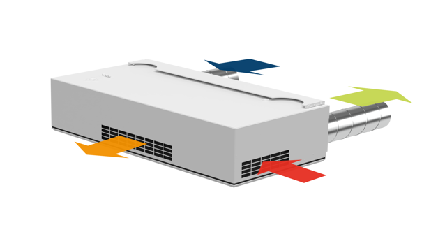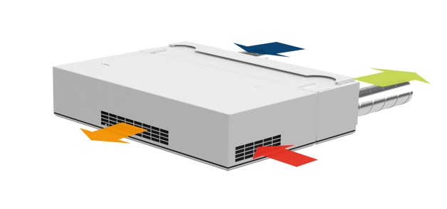 Ventilasjonsanlegget kan installeres helt synlig eller delintegreres i taket, slik at bare den nederste delen er synlig. Det er også mulig å føre avtrekket i rør, slik at man f.eks. kan montere ventilasjonsanlegget over en diffus himling, eller koble til avtrekk fra et tilstøtende rom.